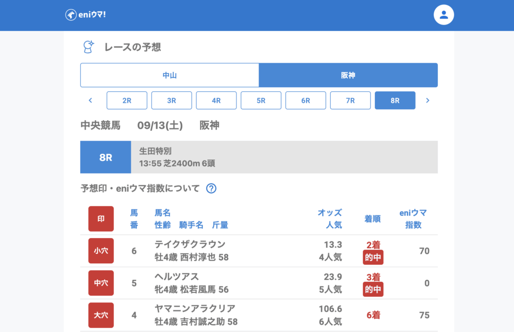 阪神ではフレンズプラス(120.7倍/eniウマ!指数65)の大穴を含め、シュヴェスター(34.2倍/eniウマ!指数75)、バルミラクル(7.2倍/eniウマ!指数75)、エンベッカ(10.8倍/eniウマ!指数115)、ビーグラッド(33.5倍/eniウマ!指数75)などを発見。