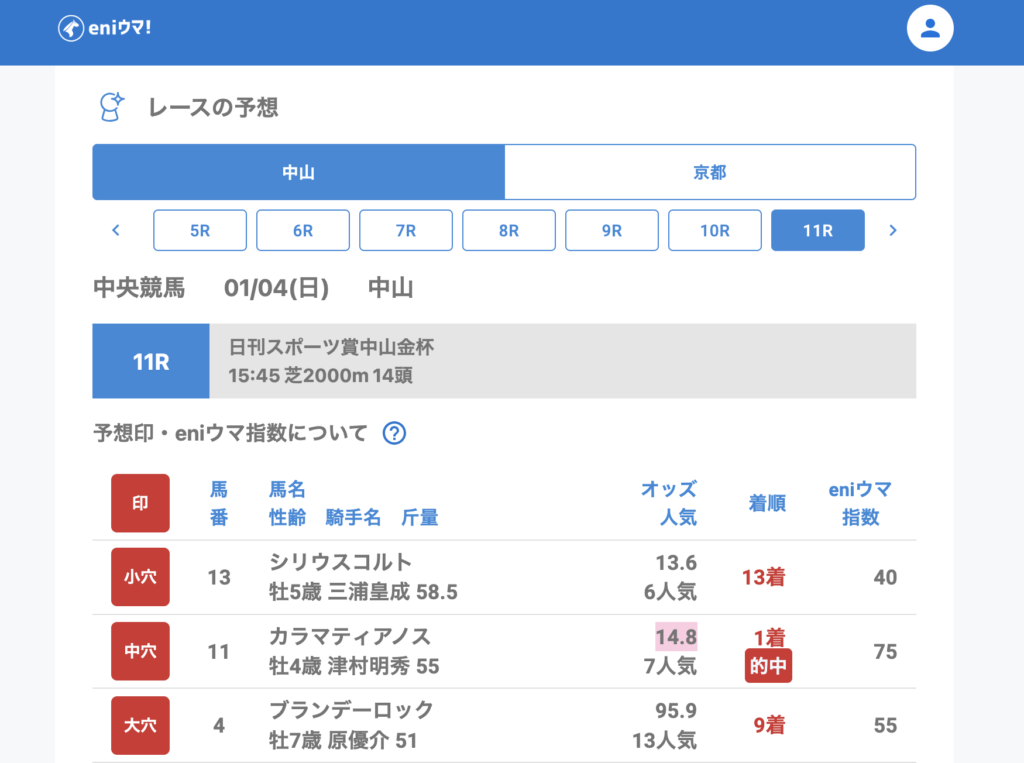 1月4日(日) 中央競馬㊗️穴馬的中一覧㊗️