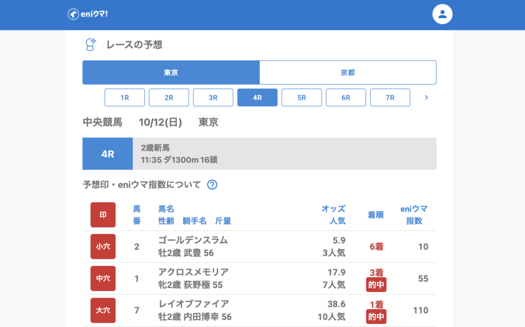 さらにアクロスメモリア(17.9倍/eniウマ!指数55)も3着に入り、ダブル的中を達成。