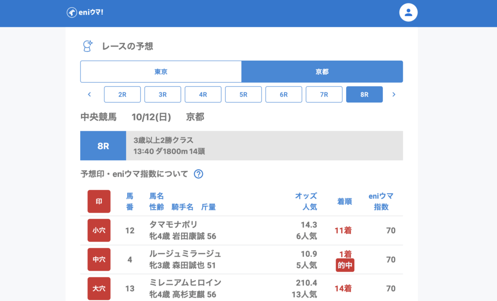 さらにアメティスタ(27.1倍/eniウマ!指数90)が2着と、妙味あるダブル的中を記録。