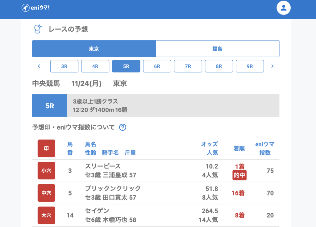 🎯 11月24日(月) 中央競馬㊗️穴馬的中一覧 🎯