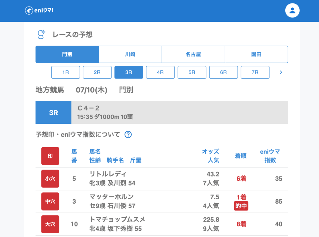 7月10日(木)地方競馬の結果報告