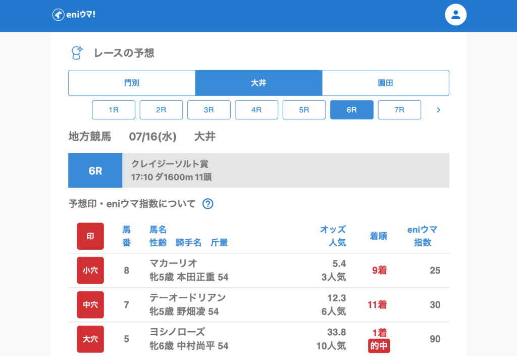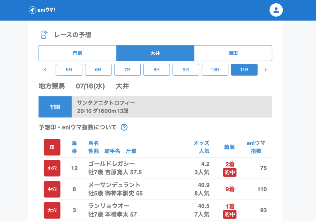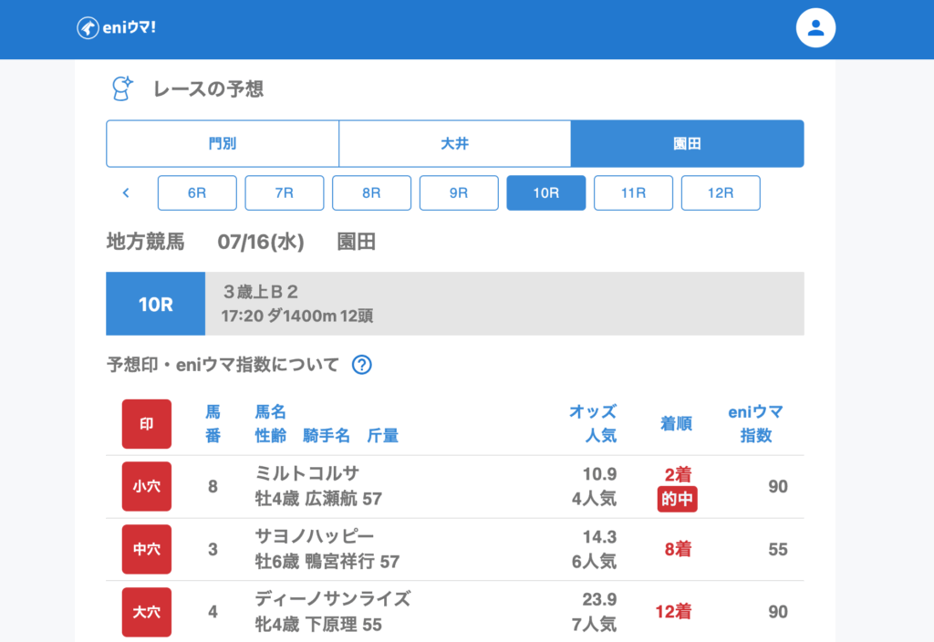 今日も地方競馬(門別・大井・園田)の3会場で、eniウマ!の穴馬がしっかり存在感を見せました。