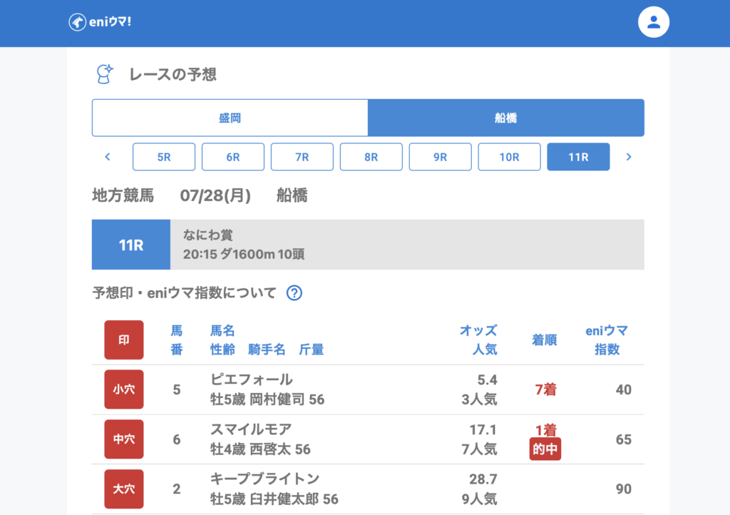 この日はeniウマ指数が低めの馬も混じり、全体的には大きな波乱を捉えきれませんでしたが、それでも複数の好配当を確保。