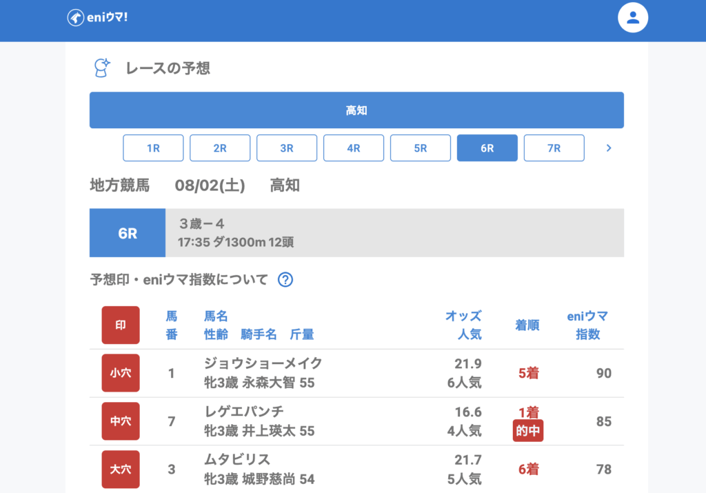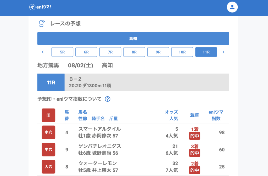 8月2日は高知のみの開催でしたが、高知11Rでは推奨馬がすべて馬券内に入り、会心の的中となりました。