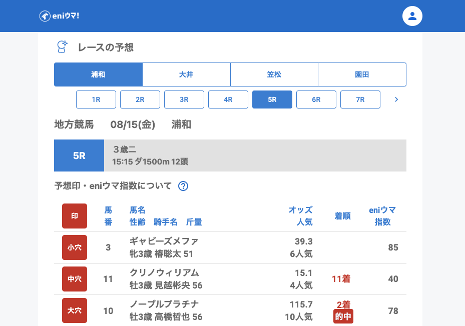 ※【】内の数字はeniウマ!独自の穴馬推奨指数です(0~200)