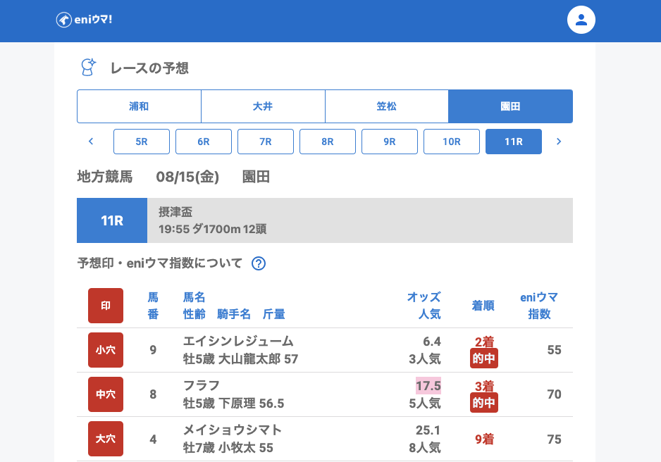 浦和ではジュンシリやノーブルプラチナがきっちり馬券圏内を確保。笠松7Rではクジラが的中し、園田では指数こそ低めながらワンダーグリーやサンエルサが結果を出してくれました。