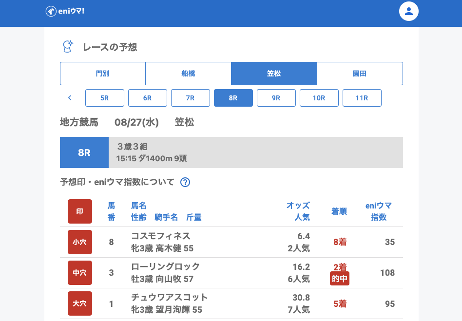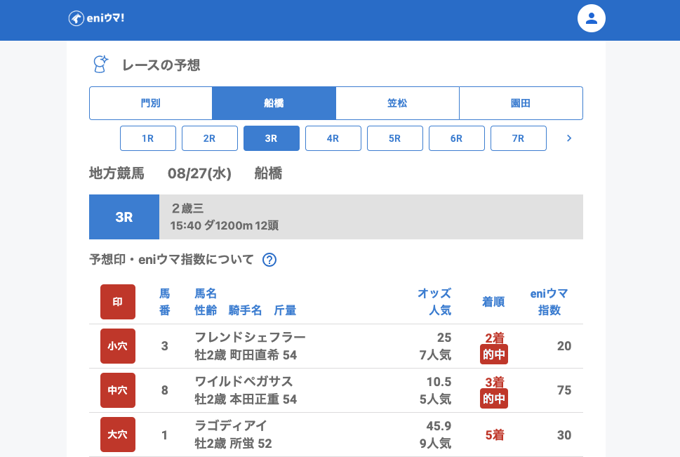 8月27日(水)は、門別・船橋・笠松・園田の4会場で地方競馬が開催されました。