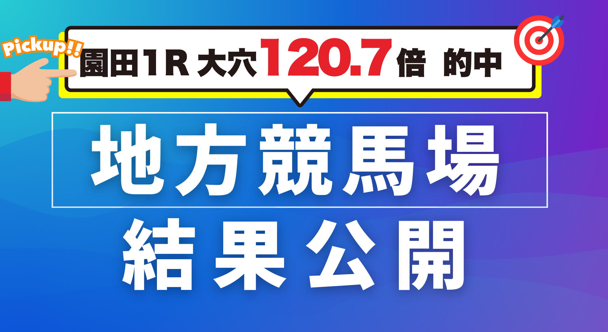 また、園田1Rでは大穴120.7倍キングムーンが3着。