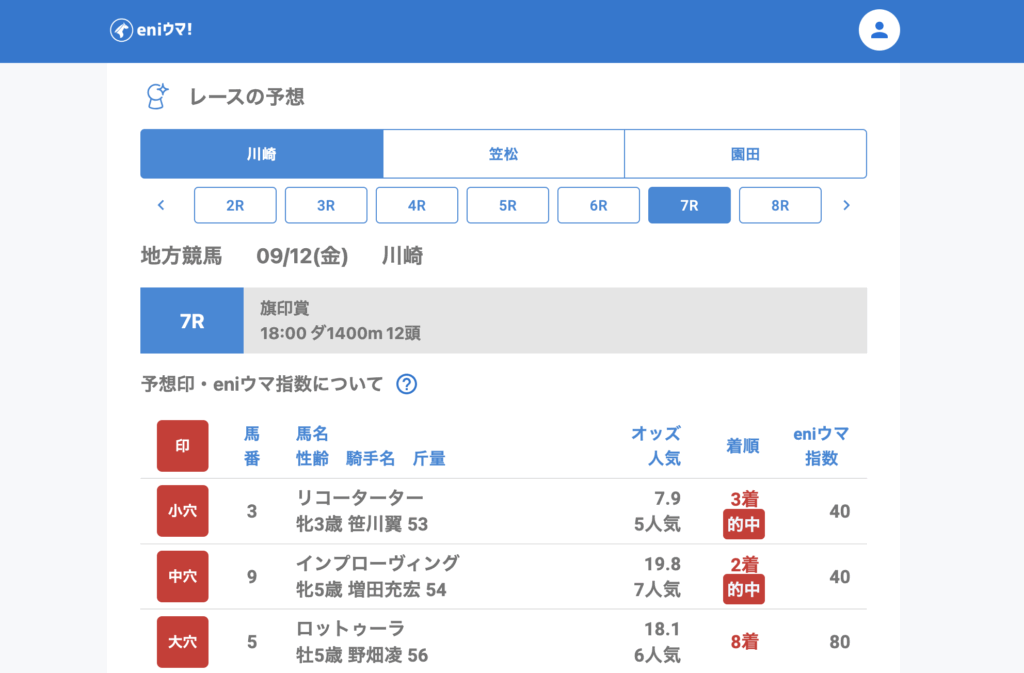 9月12日(金)は川崎・笠松・園田の3会場で地方競馬が行われました。