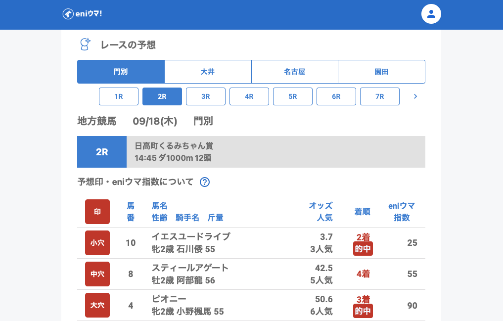 9月18日(木)は門別・大井・名古屋・園田の4会場で地方競馬が行われました。
