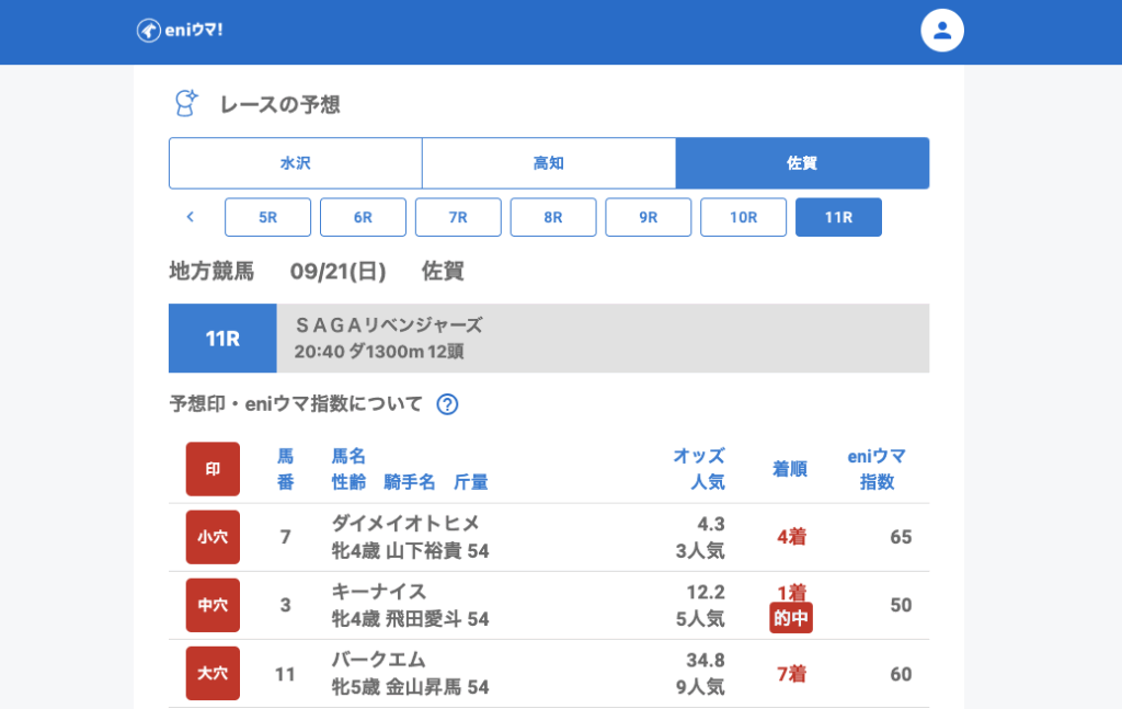 佐賀は引き続き堅調で、佐賀リベンジャーズでキーナイス(12.2倍/指数50)の単勝を的中。