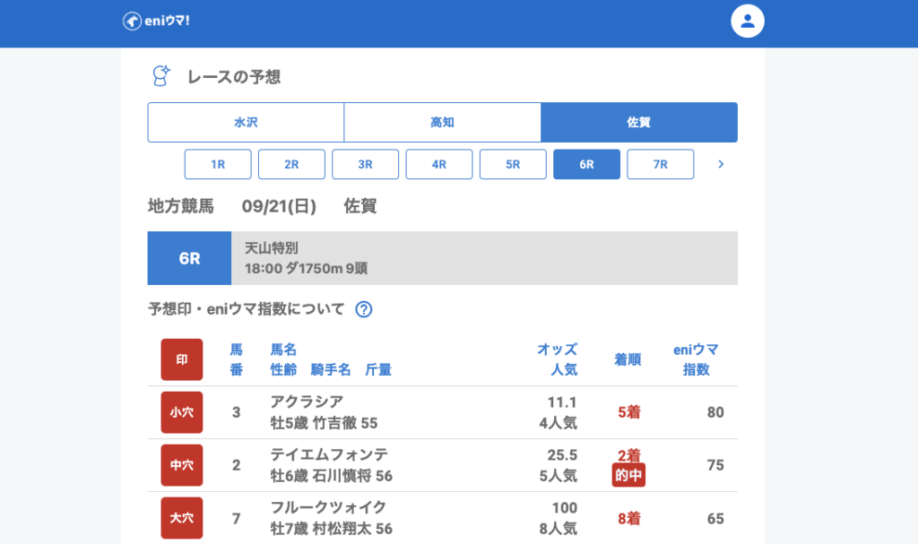 他にも単勝を複数拾い、6Rではテイエムフォンテ(25.5倍/指数75)が2着に好走するなど、こちらも安定した成果を見せました。