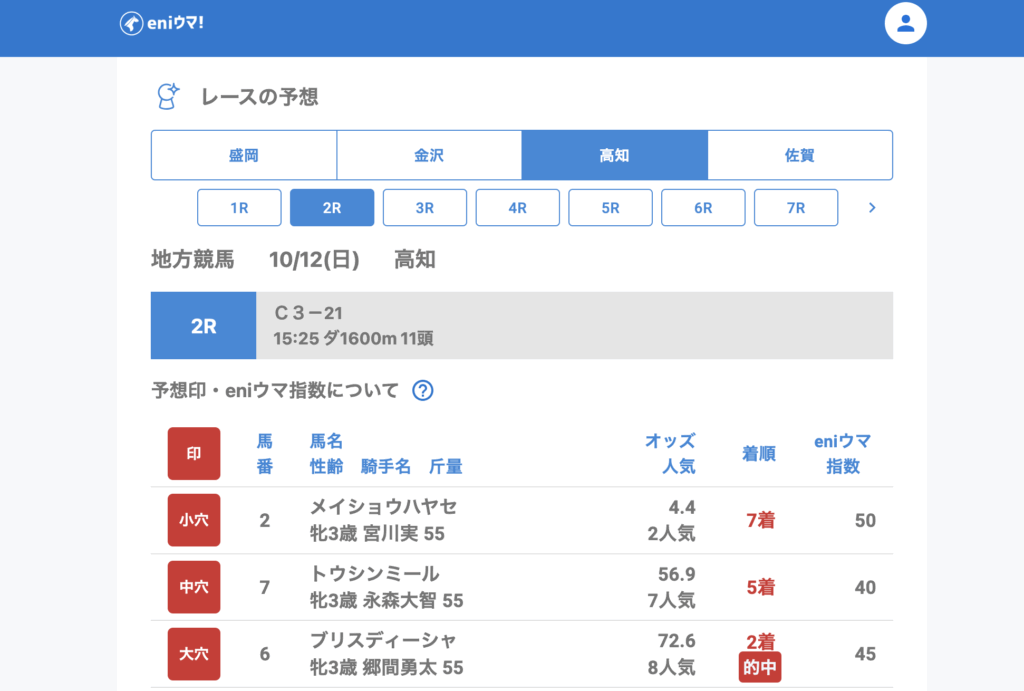 高知はこの日もっとも勢いがあり、全レース的中の好成績。