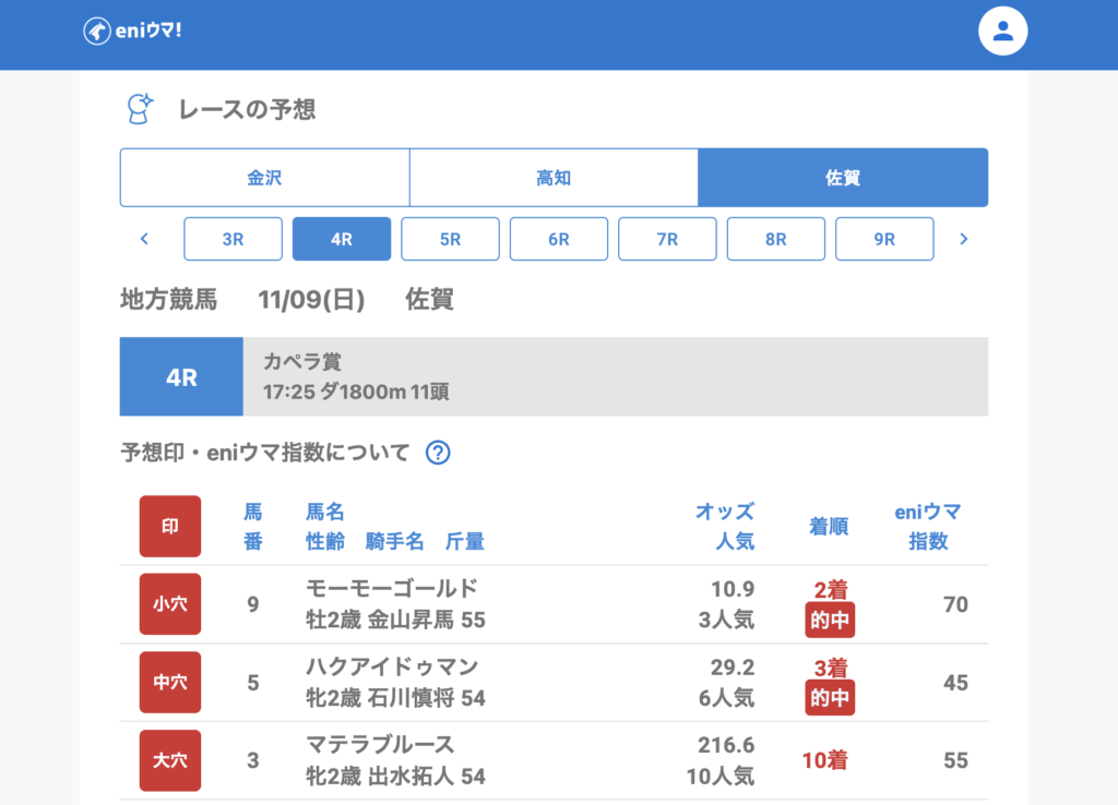 佐賀では大荒れはなかったものの、単勝4回的中と安定した内容。
