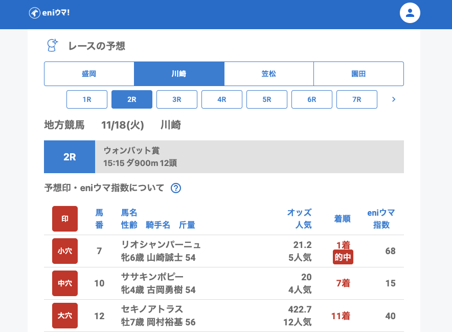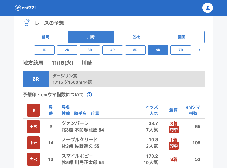 川崎では単勝的中が好調。