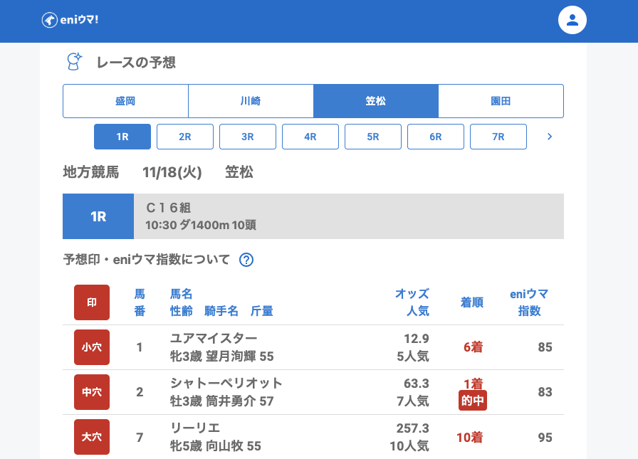 笠松はこの日もっとも的中回数が多かった会場。