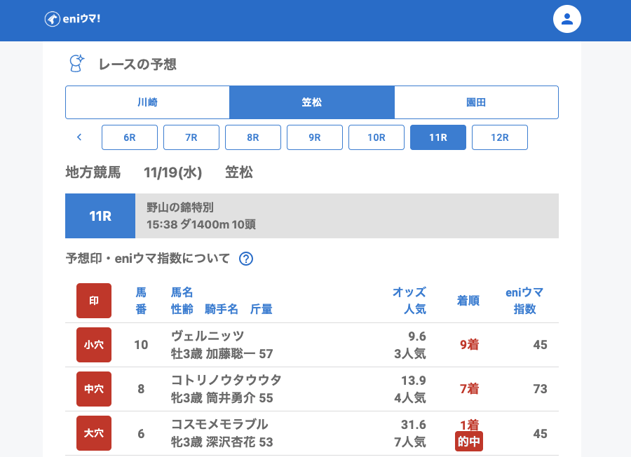※【】内はeniウマ!独自の穴馬推奨指数(0〜200)