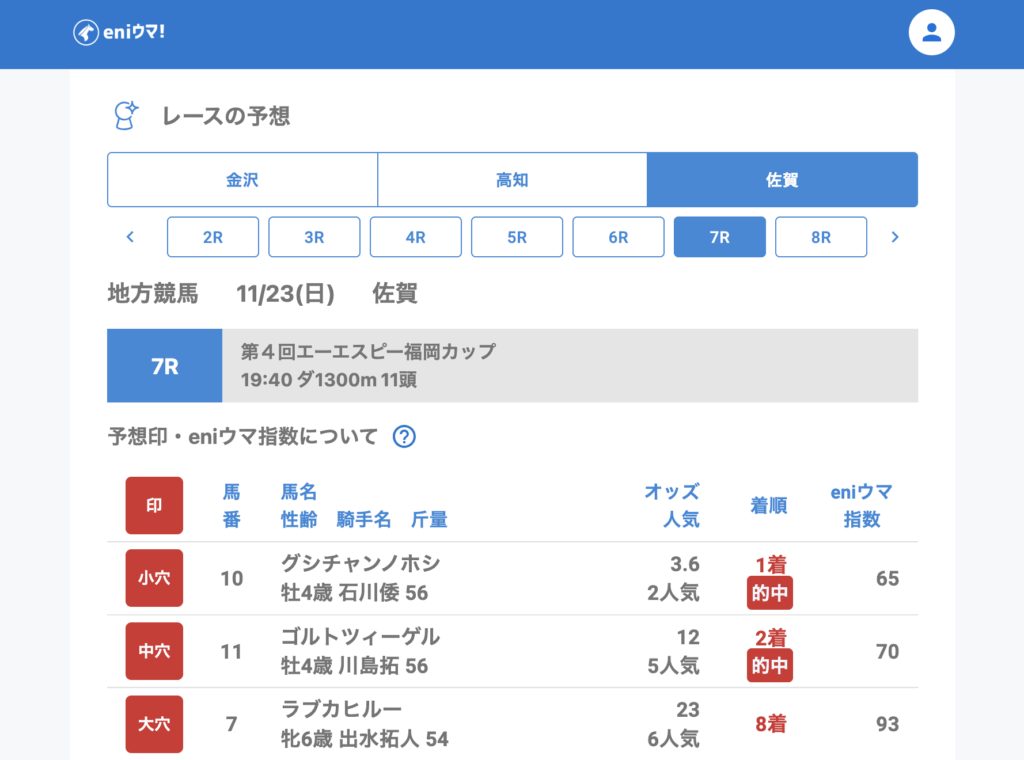 🎯 11月23日(日) 地方競馬㊗️穴馬的中一覧 🎯