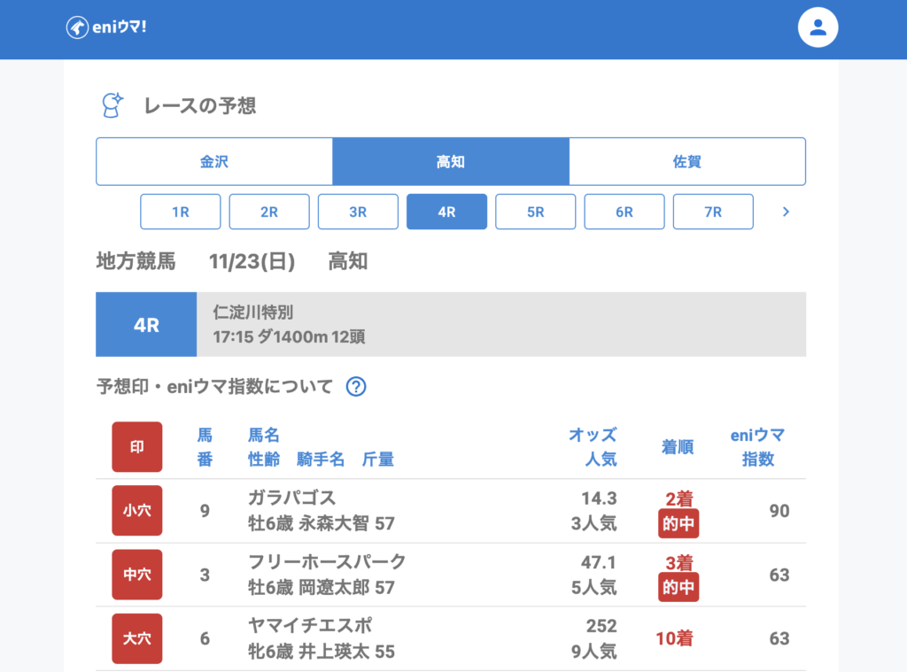 さらに高知ファイナルではエコロマーベリック13.9倍【98】が的中と良い締めでした。