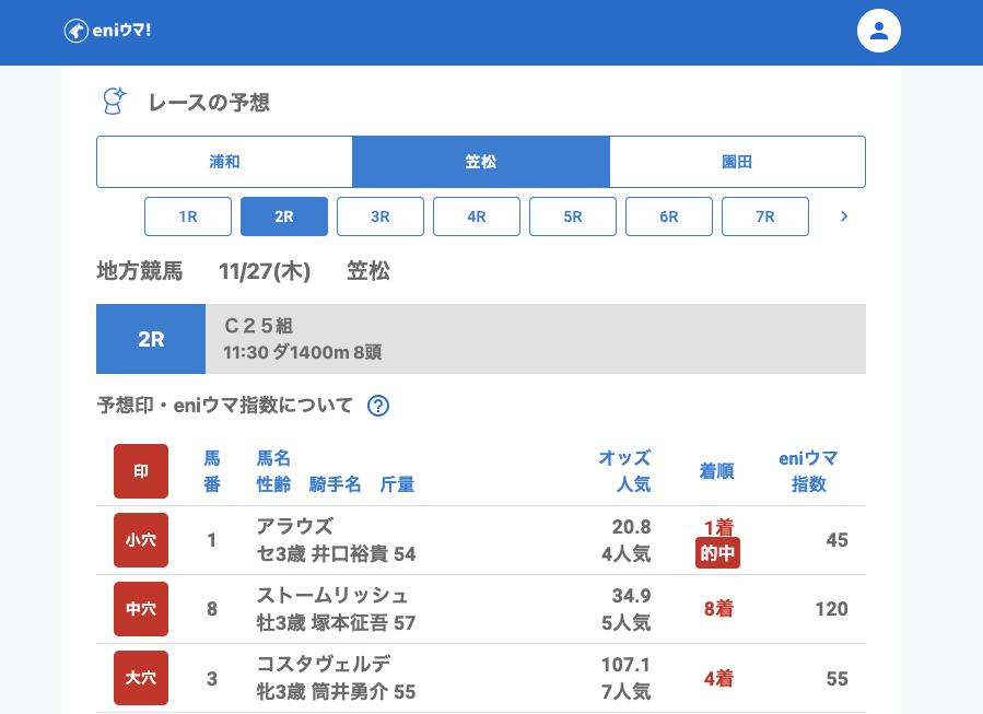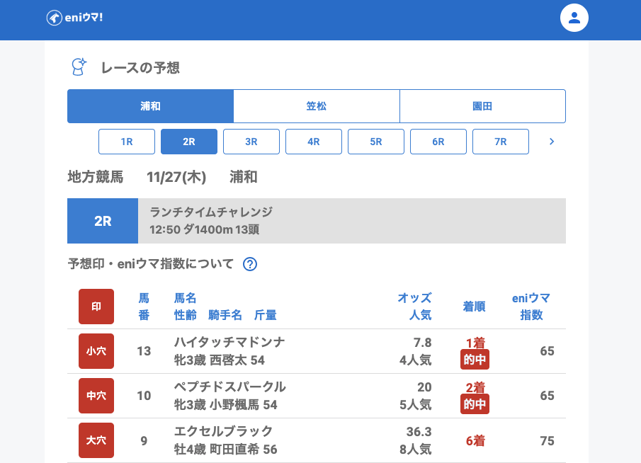 浦和では小穴〜中穴の単勝が安定して的中。