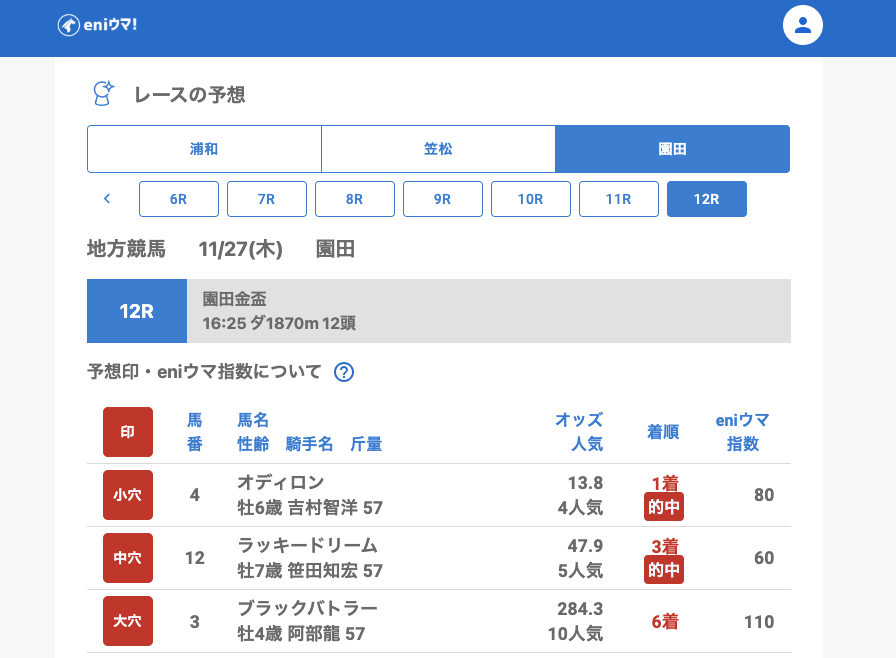 重賞・園田金盃ではオディロン13.8倍【80】、ラッキードリーム47.9倍【60】をきっちり的中。