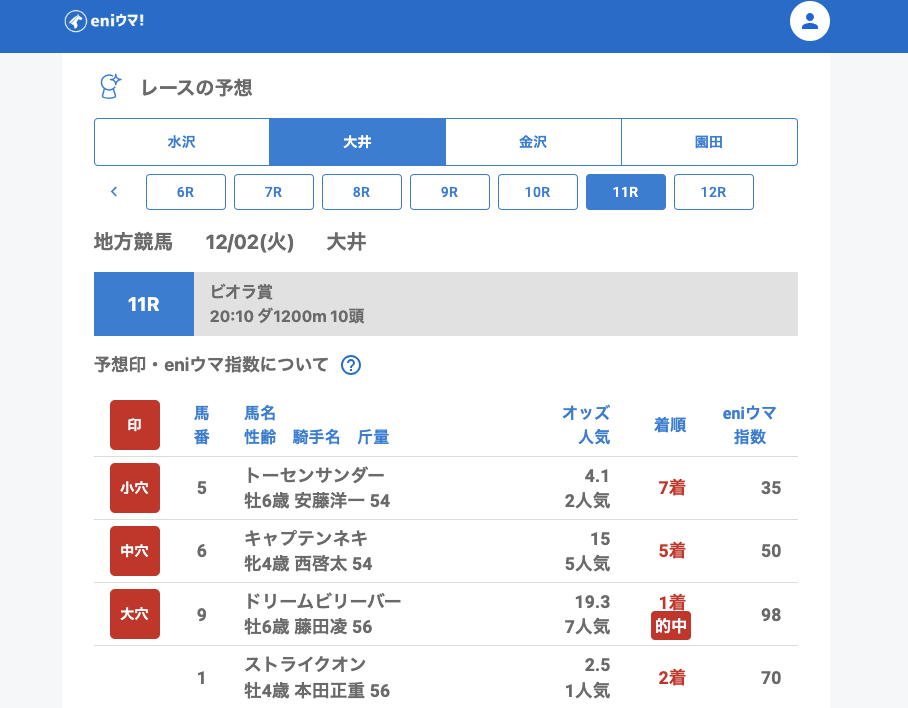 🎯12月2日(火) 地方競馬㊗️穴馬的中一覧🎯
