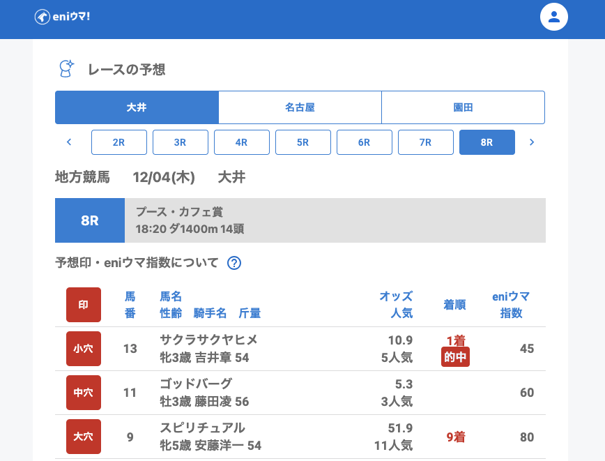 ※【】内の数字はeniウマ!独自の穴馬推奨指数(0〜200)です。
