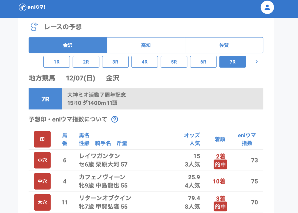 🎯12月7日(日) 地方競馬㊗️穴馬的中一覧🎯