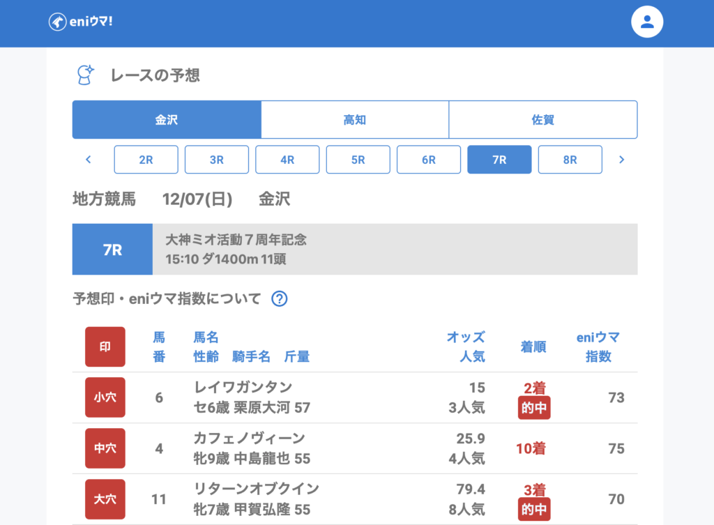 ※【】内の数字はeniウマ!独自の穴馬推奨指数(0〜200)です。