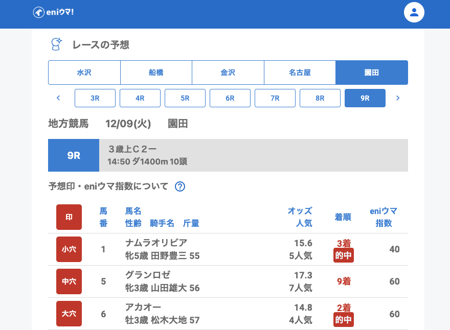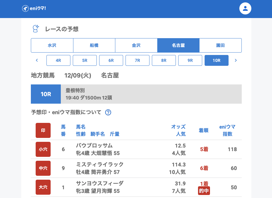 ※【】内の数字はeniウマ!独自の穴馬推奨指数(0〜200)です。
