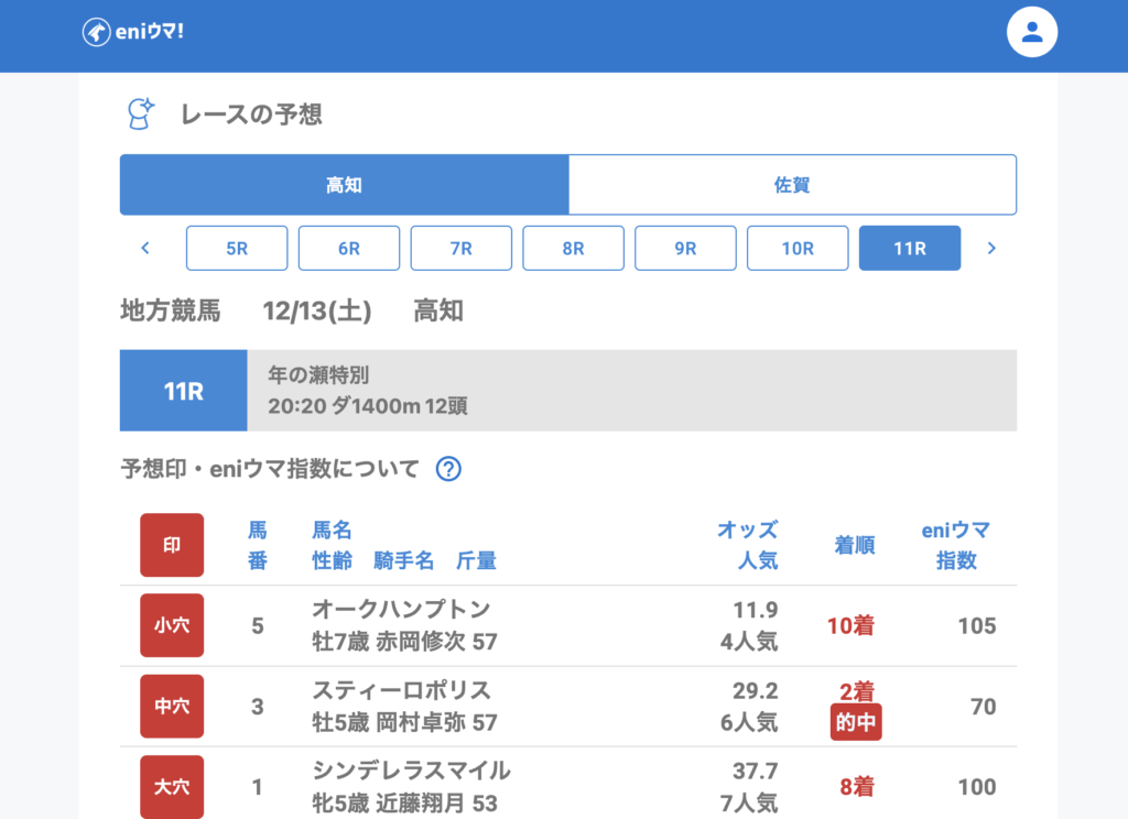 ※【】内の数字はeniウマ!独自の穴馬推奨指数(0〜200)です。