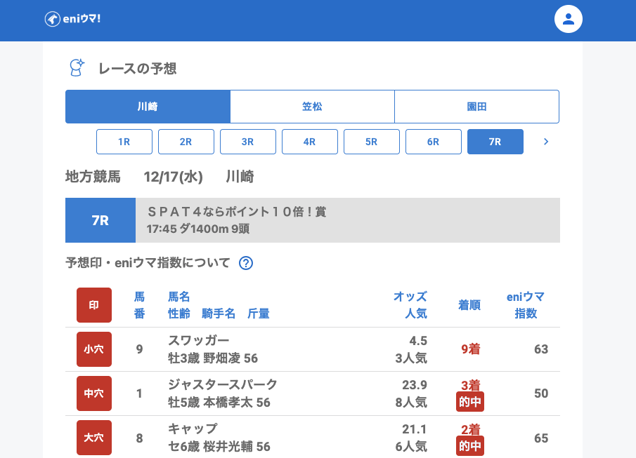 ※【】内の数字はeniウマ!独自の穴馬推奨指数です(0〜200)