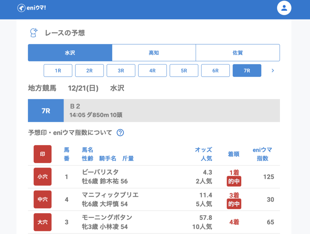 水沢では、小穴予想が高確率で的中。