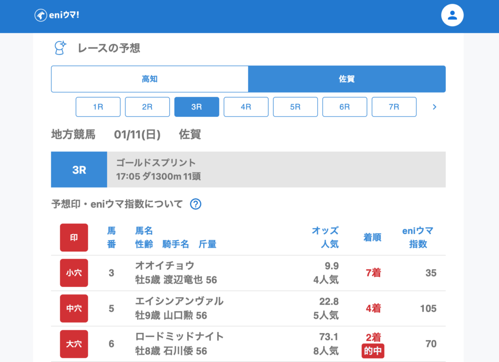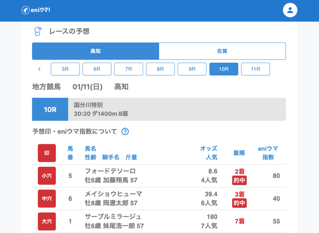 高知競馬場:7/11的中