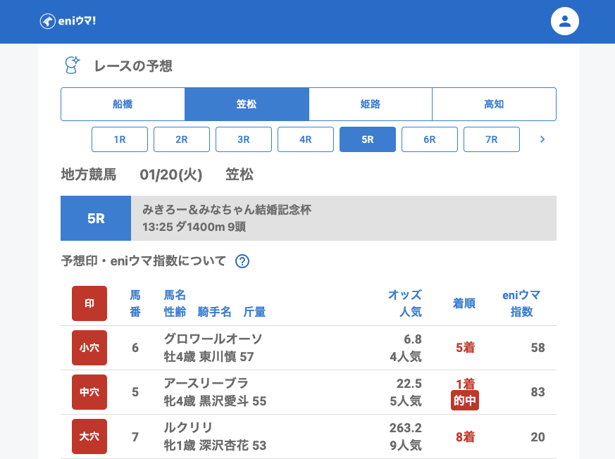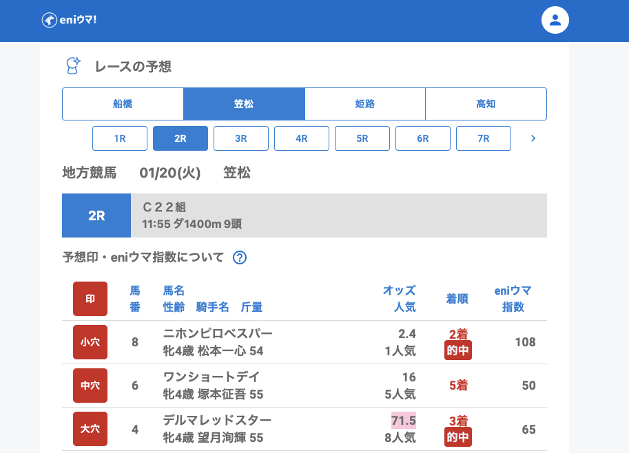 1月20日(火)地方競馬の結果予想