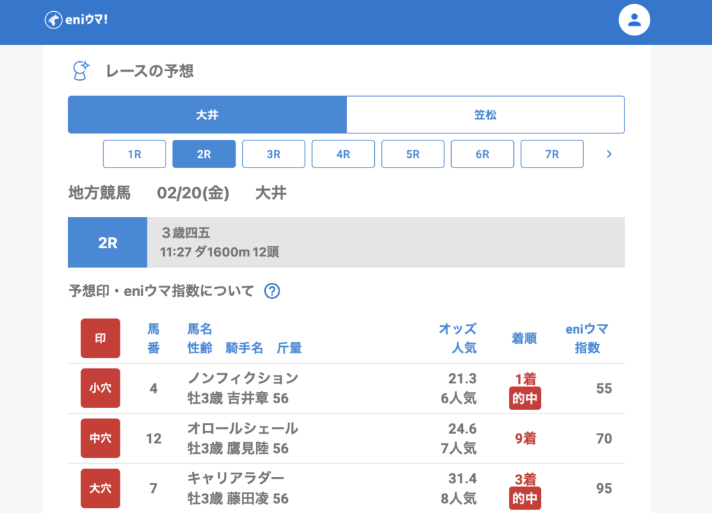 2Rでは大穴予想モイエンド40.3倍が単勝的中し、妙味のある一撃となりました。
