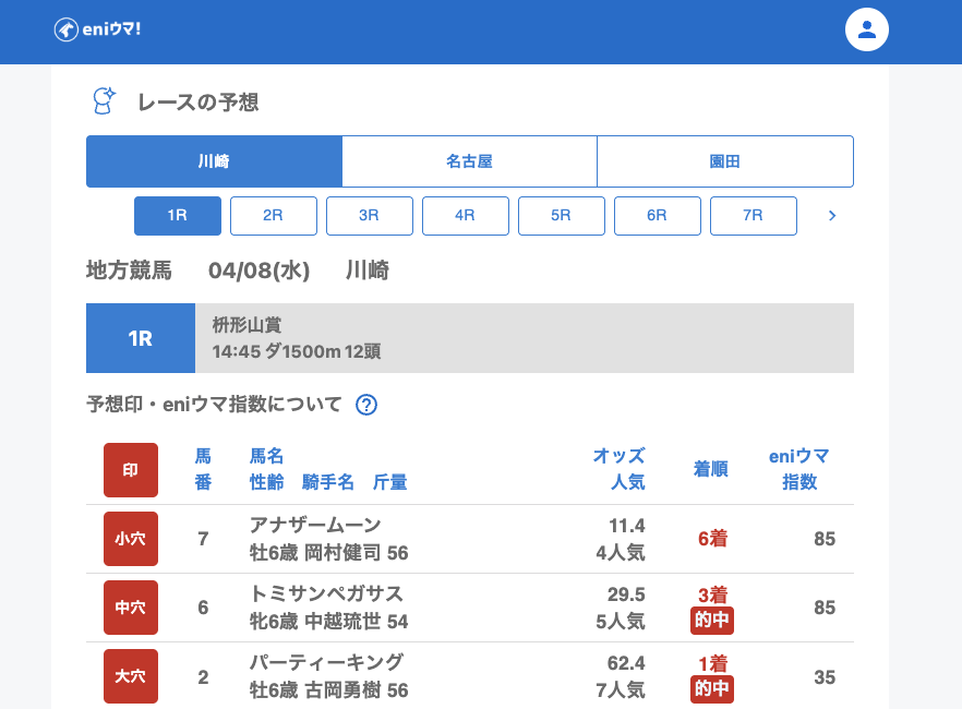 川崎は1Rから大穴予想ゴールドプランが単勝的中と好スタート。