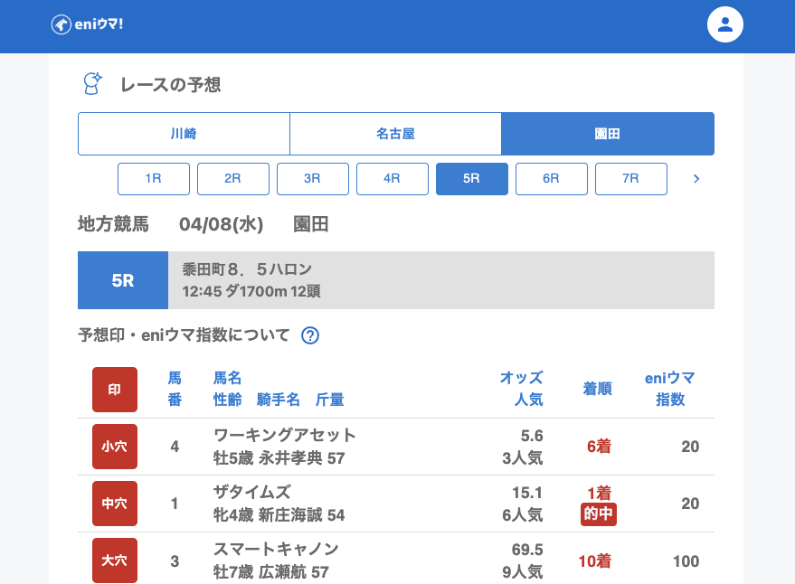 園田は5Rでザタイムズ15.1倍が単勝的中。