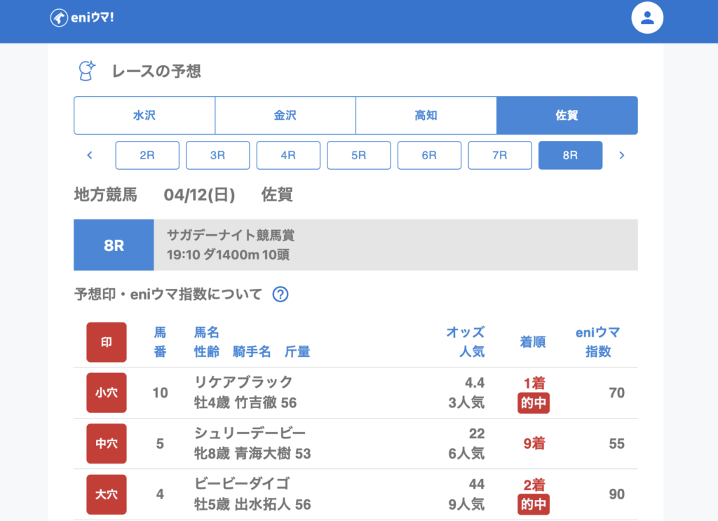 4月12日(日)の地方競馬は、水沢・金沢・高知・佐賀の4会場で開催されました。