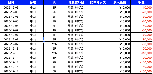 - 中山競馬場:プラスで推移